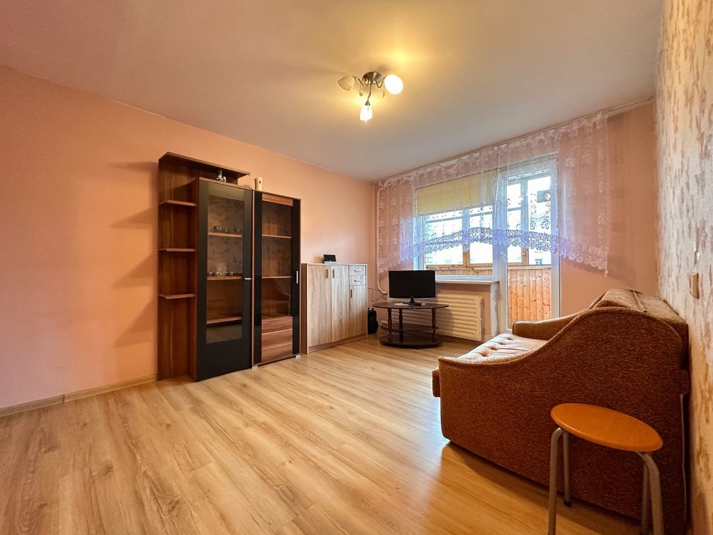 Ilgalaikei nuomai siūlomas tvarkingas ir jaukus 1 kambario butas su erdviu įstiklintu balkonu bei rūsiu. Bute yra visi patogiam gyvenimui reikalingi baldai ir buitinė technika. Tinka nuomotis tiek vienam asmeniui, tiek porai ar šeimai su vaikais, taip pat priimami ir gyvūnai.