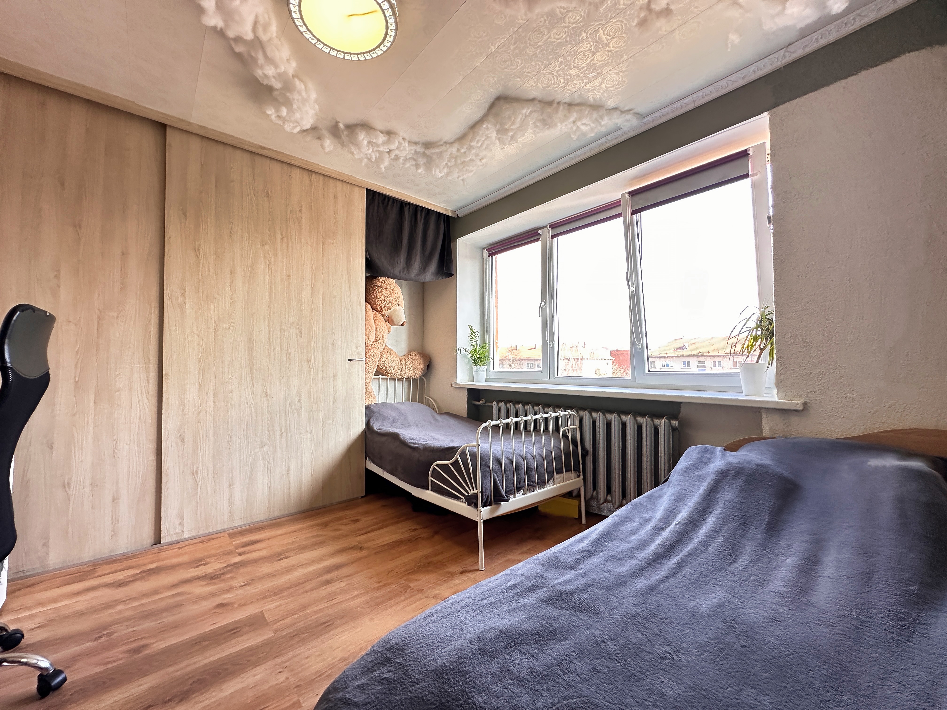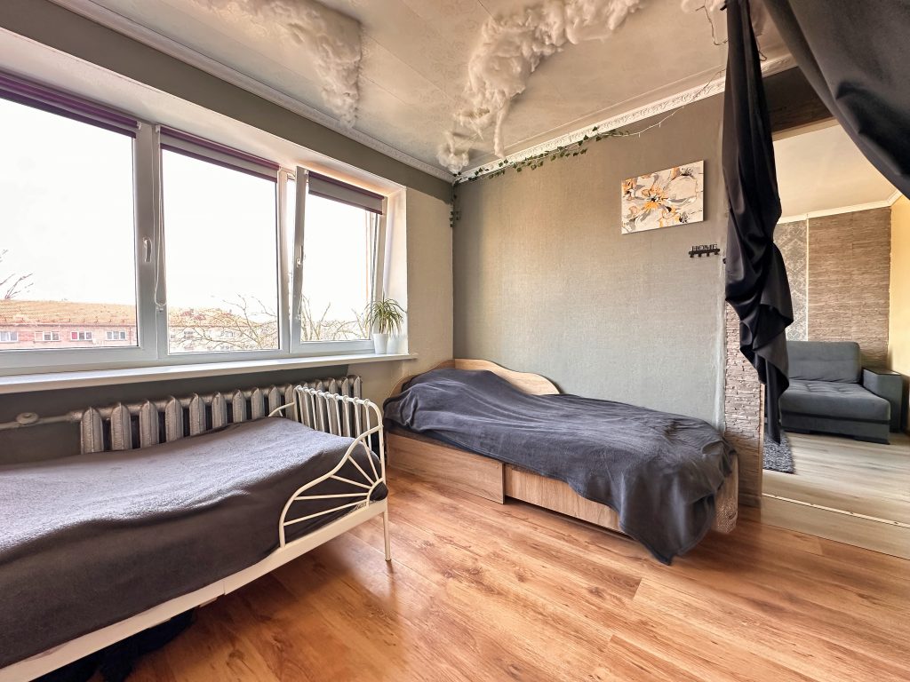 • Atskiras kambarys, tinkamas miegamajam, vaikų kambariui ar darbo erdvei