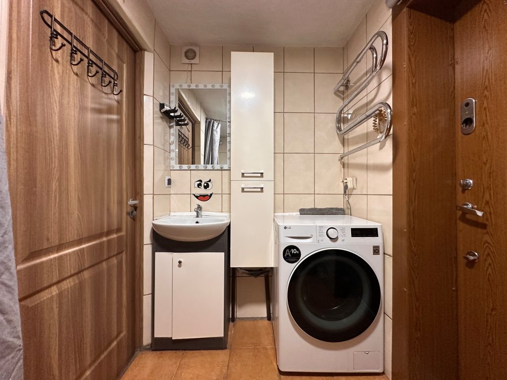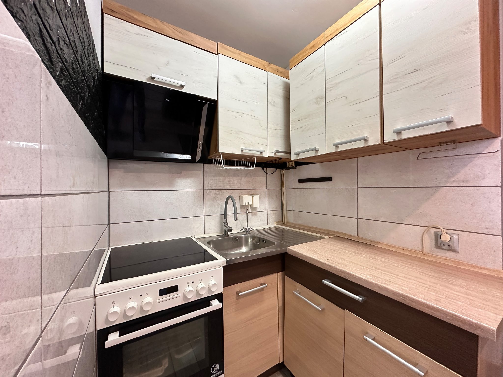 • Virtuvės komplektas ir buitinė technika: elektrinė viryklė, gartraukis, šaldytuvas, skalbimo mašina